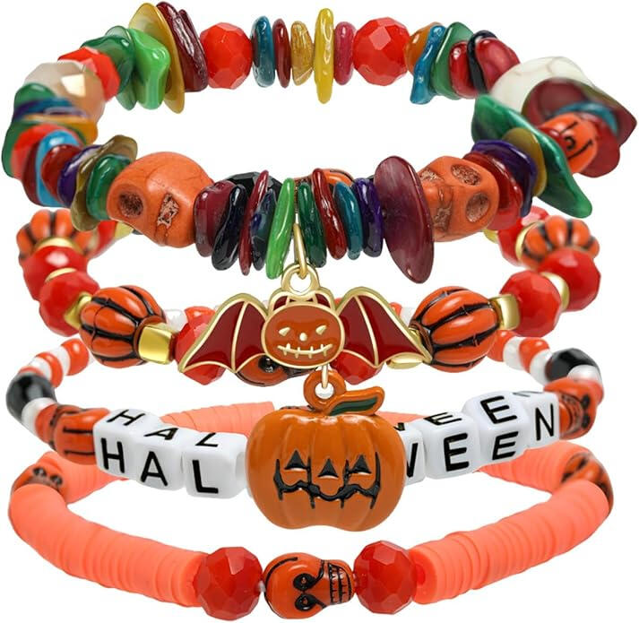 Artlunar 4pcs Halloween Bracelets Skull Pumpkin Bat Charm Bracelet